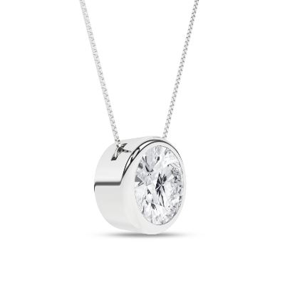 14K White Gold Bezel Set Diamond Pendant